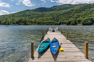 This waterfront vacation rental property is nestled into a lovely, sandy bottom swimming cove and has a private 75’ dock to accommodate your motor craft. The Lake Sunapee House sleeps up to six people. The downstairs bedroom has a queen bed, living room has a queen pull out couch and the upstairs loft has queen and full-size beds. Equipped with a modern kitchen, sun porch, gas grill, and ample seating outside, you’ll feel right at home. Amenities include a pellet stove, AC, washer/dryer, gas grill, kayaks, paddle boards, 65” flat screen TV, Xbox and plenty of board games.